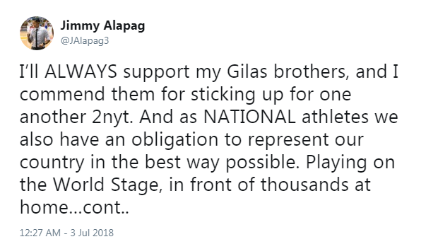 I’ll ALWAYS support my Gilas brothers, and I commend them for sticking up for one another 2nyt. And as NATIONAL athletes we also have an obligation to represent our country in the best way possible. Playing on the World Stage, in front of thousands at home…cont..
