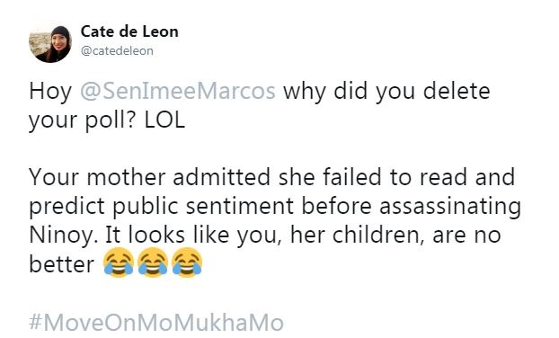 @SenImeeMarcos @ManangImee Did you delete your poll? Kasi naman move on na!