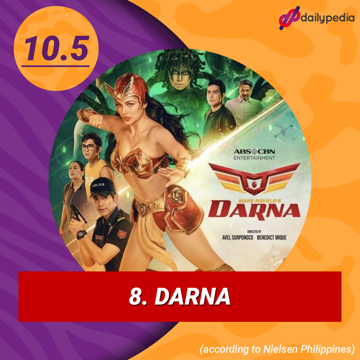 ABS-CBN’s highly-anticipated adaptation of Mars Ravelo’s Darna debuted on August 15. It was projected to keep its predecessor’s strong viewership in its time slot. Its 10.5% pilot episode rating was already impressive, but it slid downhill and even slumped to an all-time low of 6.1%. That said, the series ranks eighth on our list.
