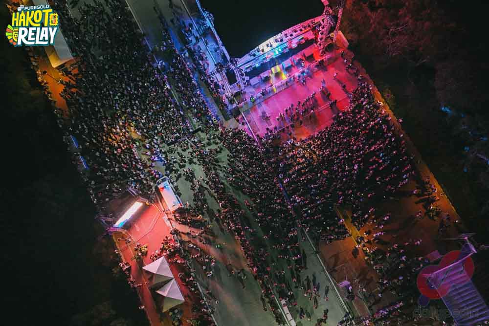 Live performances from Pinoy hip-hop artists bring added energy to the Puregold Hakot Relay as crowds fill the venue during the concert segment.